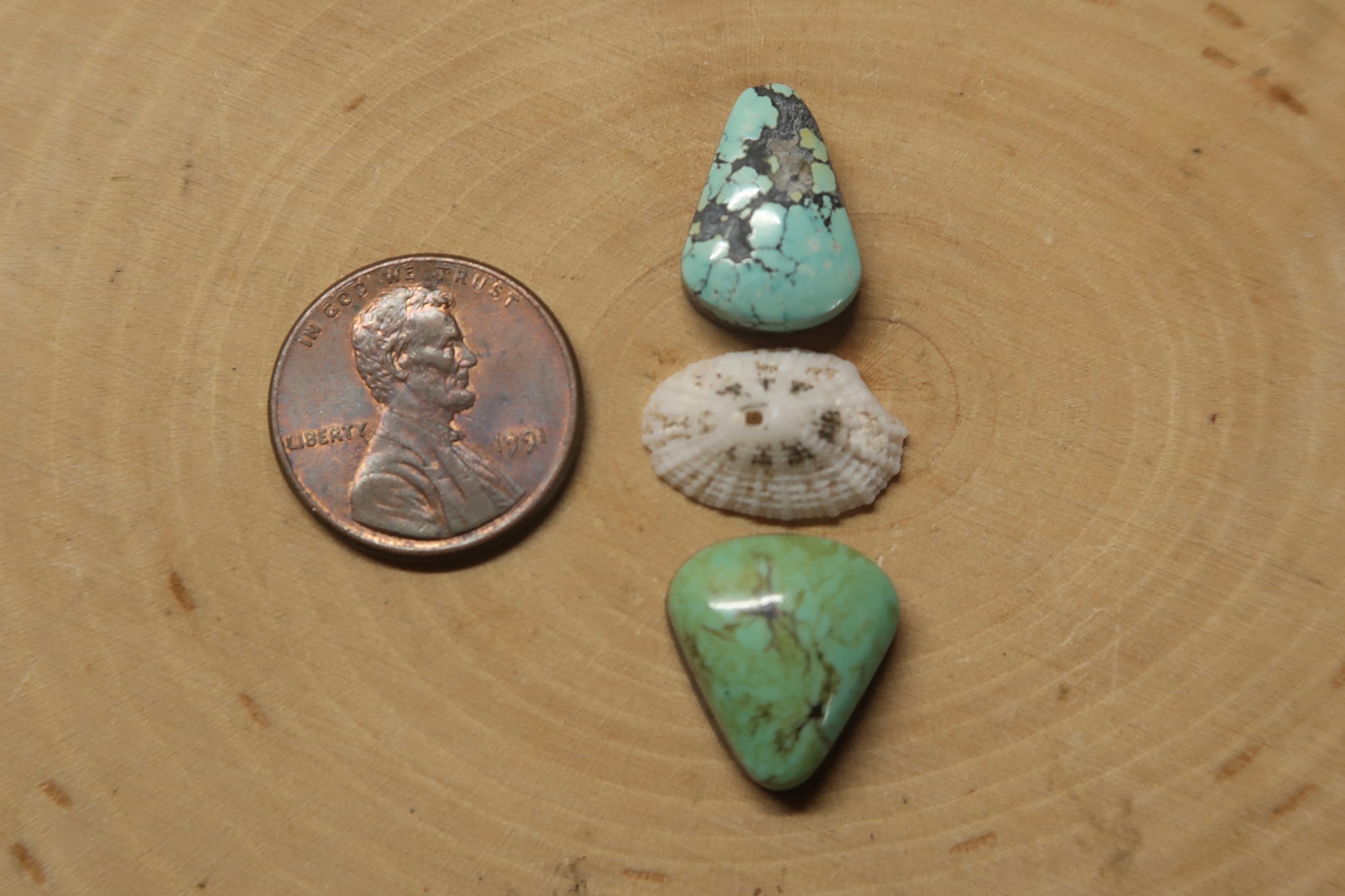 A green and blue turquoise with a shell in the center from the Bahamas , set in sterling silver on a plain sterling silver band made in your size!