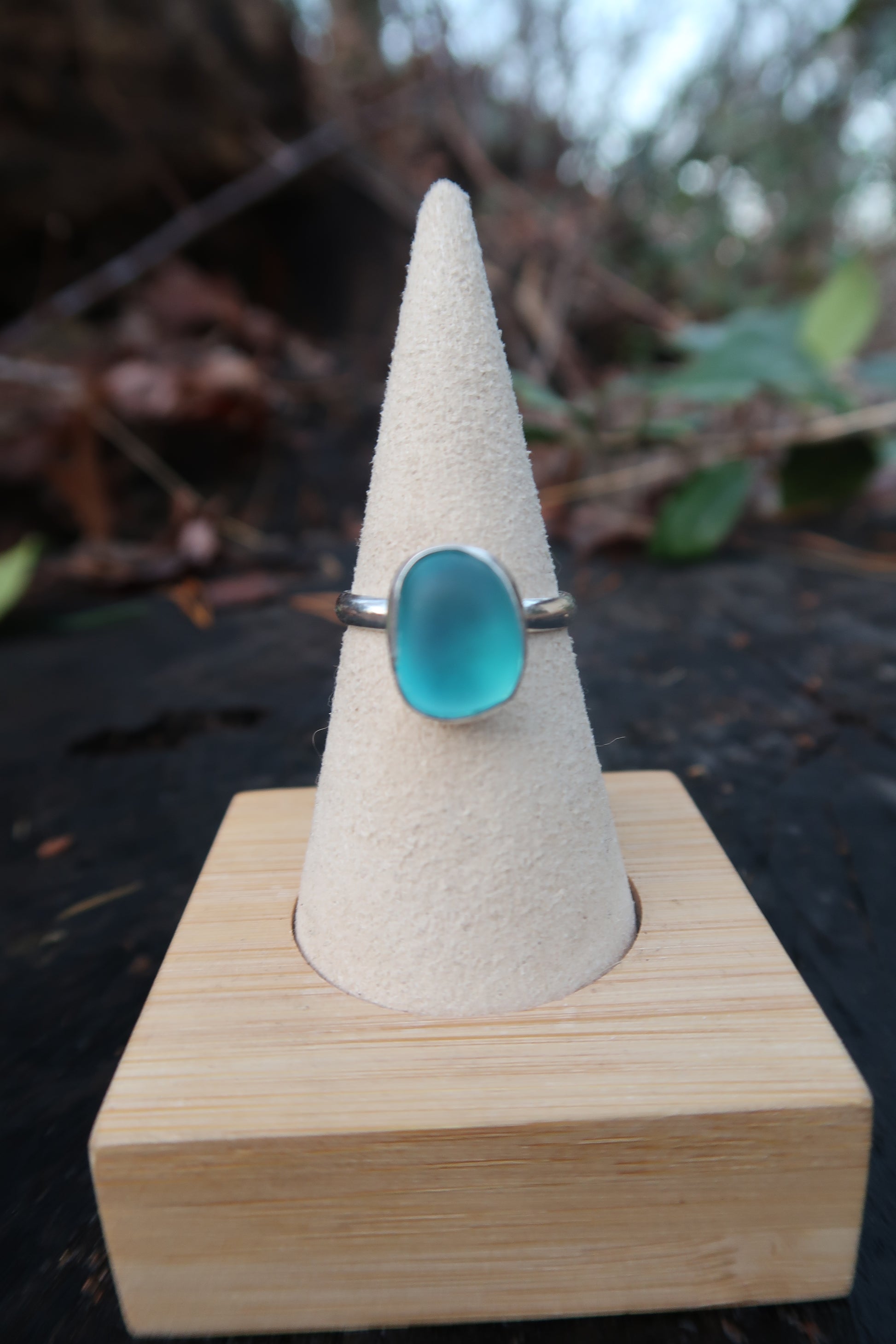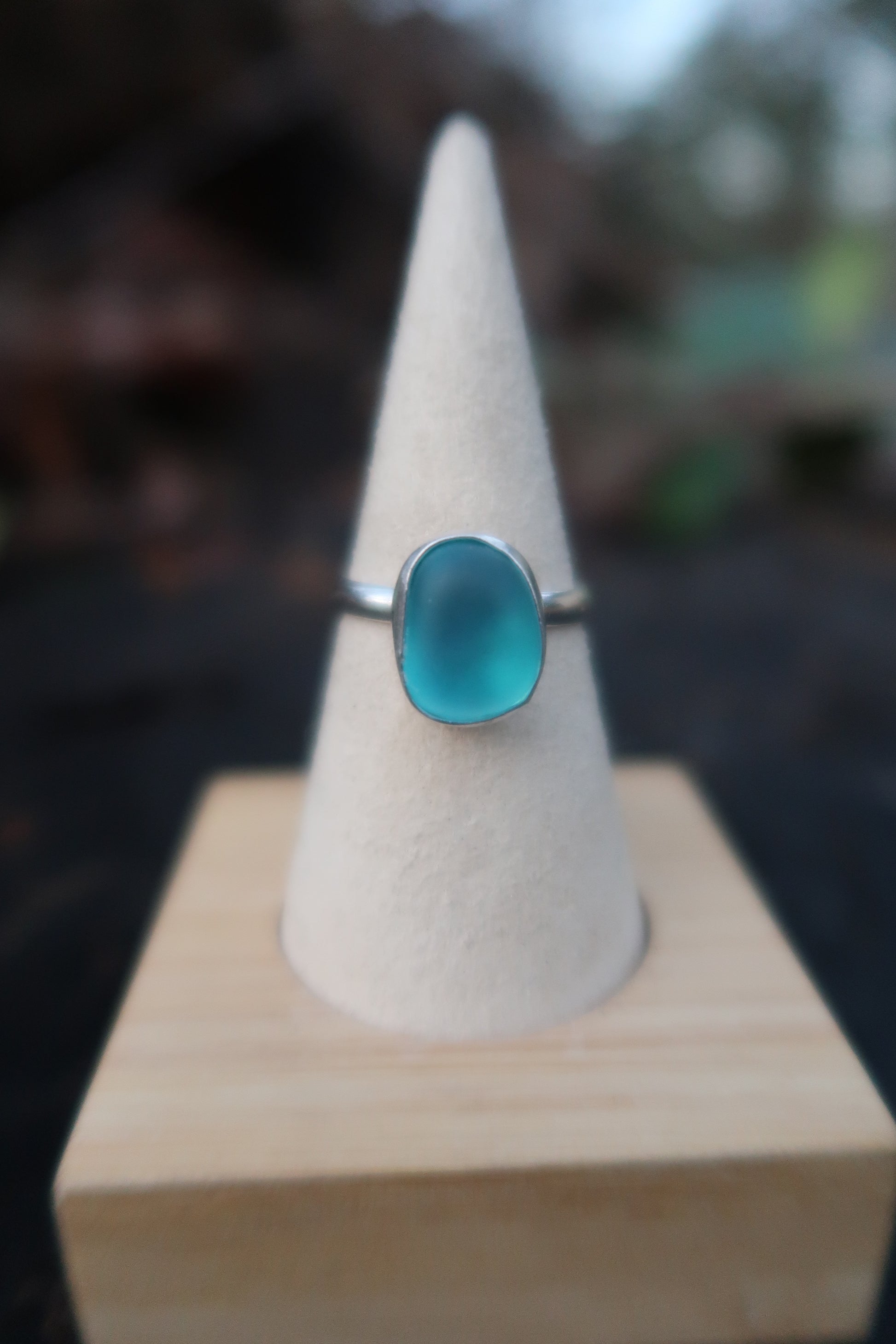 Blue seaglass ring size 7.75