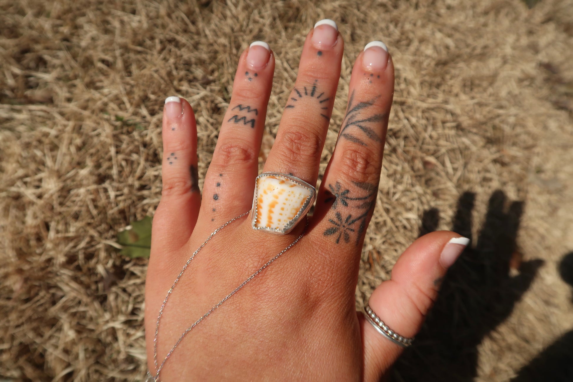 Piece of shell from Virgin Islands on a plain sterling silver band size 8